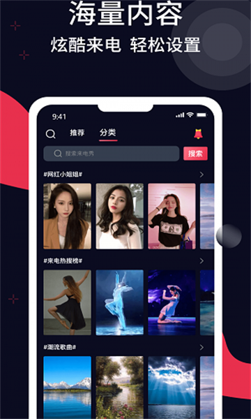 1、为用户提供了各种特色来电秀,包括美丽的动态壁纸和定制来电铃声。