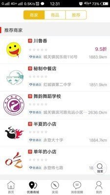 在首页中,可以查看附近店铺商家