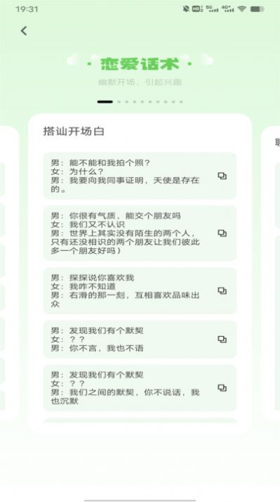 1、能够根据场合和用户喜好推荐相应的聊天话术,让用户在各种社交场合都能游刃有余;