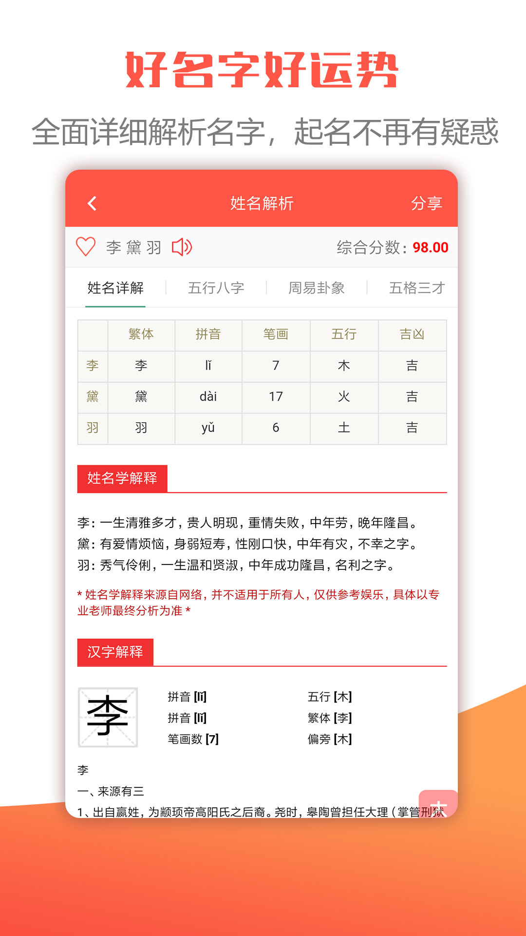 还提供专业的起名解释和名字分析服务,为用户提供更全面的名字信息;