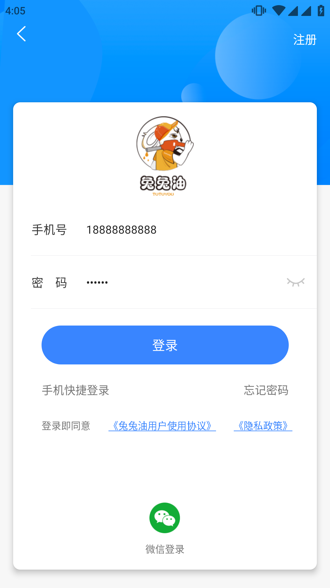 兔兔油是国内首家基于移动互联网技术开发的拉油送油服务平台。
