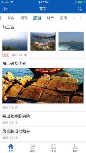 3、新岚山app结合岚山区新的图文、视频类信息,融入政务、亮点、人文、公告等内容。