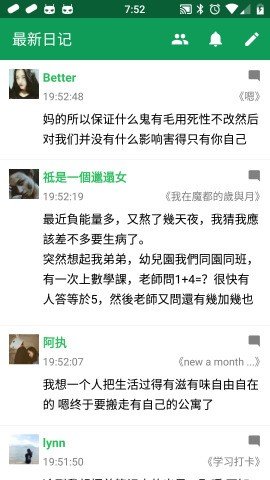 胶囊日记这款软件特别的好用,我们可以随时参加到各种话题中,和囊友一起互动交流,并且还可以随时在线查看我关注的囊友,她有任何动态会及时提醒,方便随时查看,也可以对关注我的用户进行浏览回关,在这里轻松记录自己的日常。