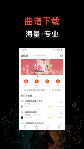 2、每天都会有关于吉他的干货更新,让大家能够更好的学习关于吉他的知识,还有海量专业曲谱下载;