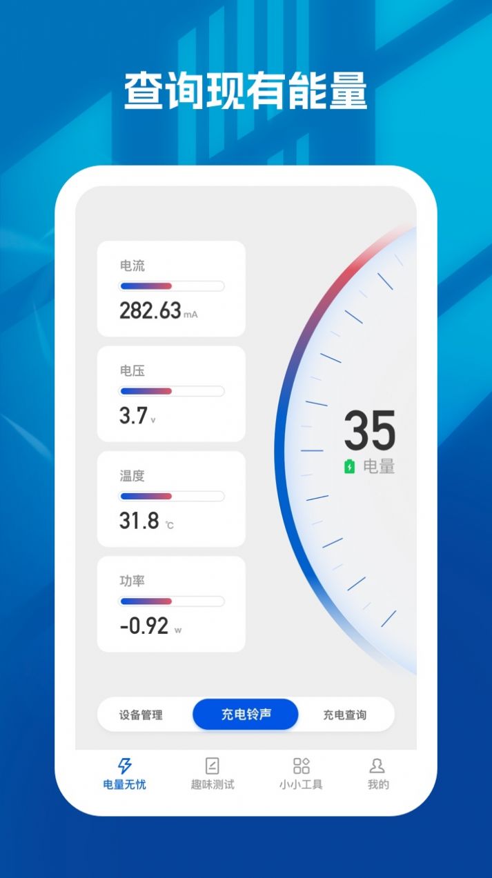 1.实时显示电池电量,预估使用时长,让你不再因为没电而掉链子!