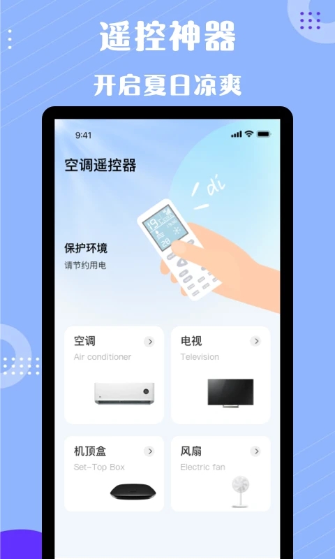 2、界面简洁,操作方便,打开手机即可快速匹配家里的空调、让您在炎炎夏日也能体会到凉爽和真正的便捷。