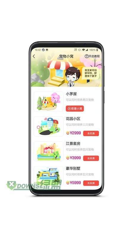 有丰富类别的宠物选项,宠物能够与用户互动、自成长,为用户提供休闲娱乐功能和精神寄托陪伴。