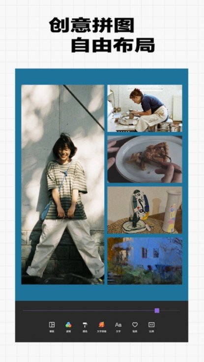 手机照片美化软件,支持多种拼图模板,提供大量质感滤镜;