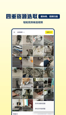 - 强大的视频源文件选取器,不让您遗漏任何视频,除了可以从手机的媒体库选取视频,还可以对2265文件库全量扫描,即使是刚从微信保存下来的视频也能迅速扫描出来供选取。