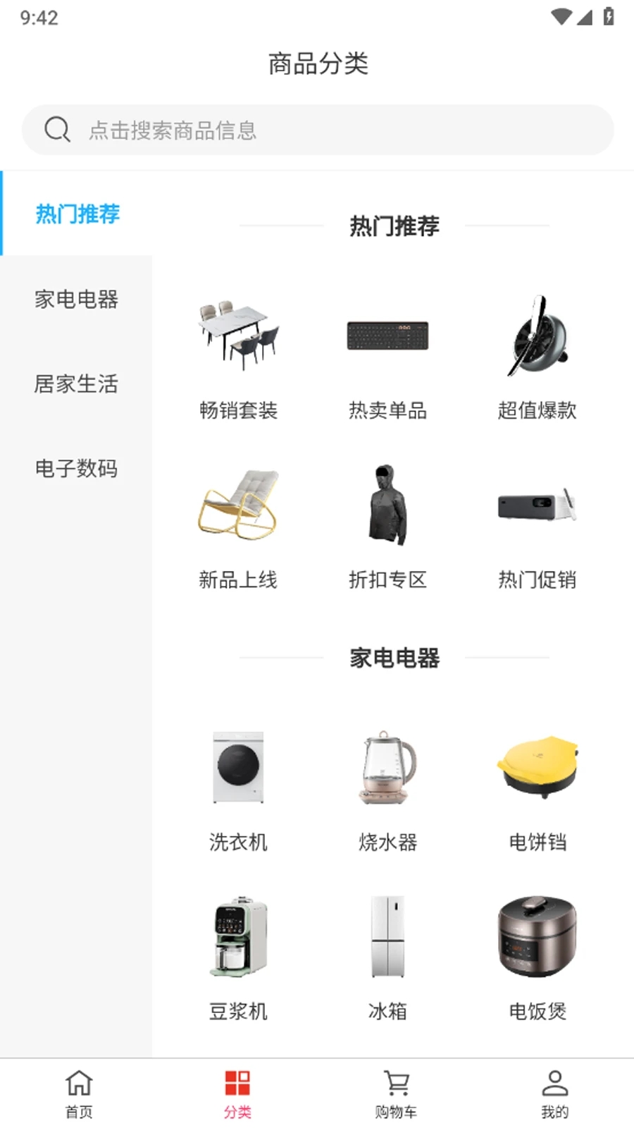 3、购物界面设计上十分简洁清爽,各项功能设立合理,使用户可快速上手,进行购物和团购。