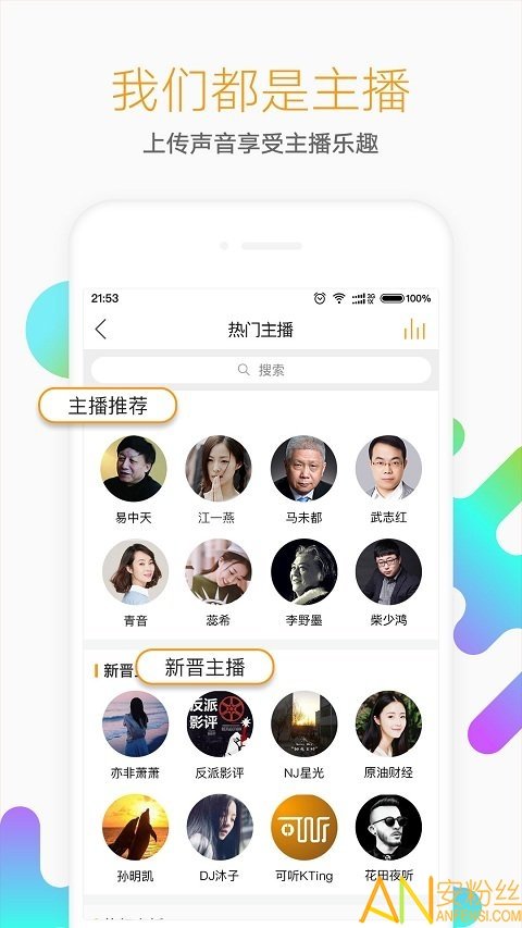2.上传节目:所有用户都是懒人主播,可自由上传随时收听。