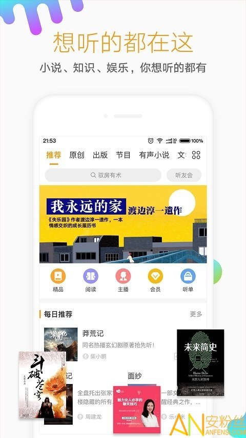 有声小说,电台节目,知识文学,3亿用户的选择!懒人听书是一个移动有声阅读应用,提供免费听书、听电台、听新闻等有声数字收听服务,懒人听书深受广大用户喜爱的移动有声阅读应用,3亿注册用户,3千万月活跃用户,是有声阅读领域的领航者!