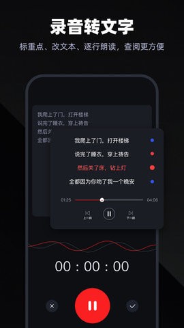 支持回放标记点、可调播放快慢、还可边看文字边听录音;