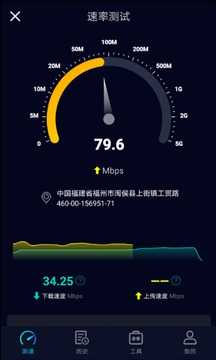 由于默认选择的是最近的服务器,所以Ping值一般小于20ms,测出的下载与上传速度基本就是当前的出口带宽。