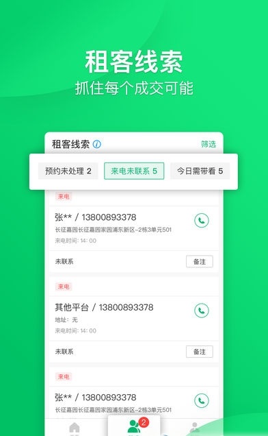 1、精准线索推送,优质客源让您轻松接单。