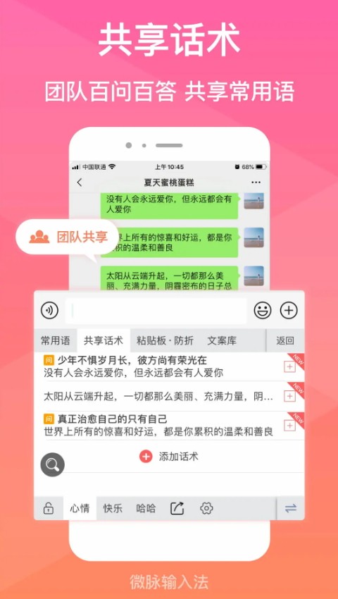 个性化设置:微脉输入法可以自由设置主题、皮肤、字体、表情等,用户可以根据自己的喜好和需求自由定制输入法界面。
