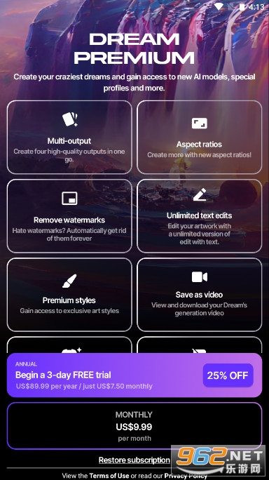 随时随地都可以根据自己的想象和动手能力完成一次梦境图的制作,儿时的梦想就是有朝一日将自己曾经做过梦代入到现实当中,这这款梦境图生成软件Dreem by wombo就能够轻松实现并且帮助到你。