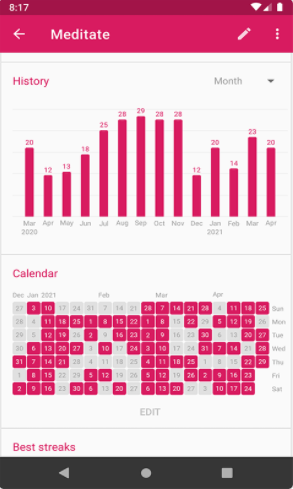 2.当你有任何需要做的事情都可以在上面进行实现,每一次完成的事情都可以进行打卡,看一下自己究竟能够坚持多久;