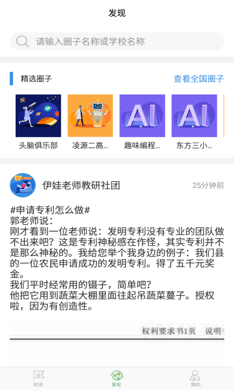 【发现】在这里你可以浏览推荐的圈子,感兴趣的可以点关注评论