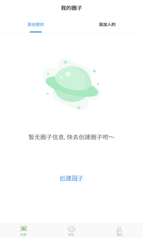 【社区】里面展示了我创建的和我加入的圈子,创建专属自己的内容天地,支持别人加入