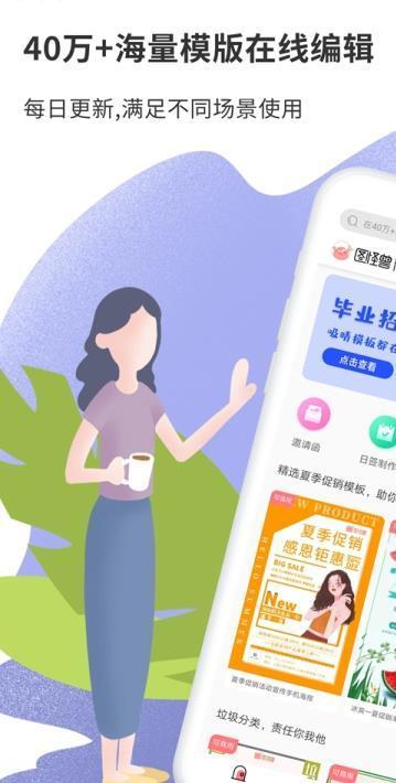 v2.8.4产品特色:<\br>【海量模版】40万+原创图片模板,涵盖了手机海报、名片、营销长图、电商banner、淘宝店铺首页、封面、邀请函、手机壁纸、每日一签、LOGO设计等,每日更新,满足不同场景使用<\br>【极易操作】选择模板,改字、换图即可完成各类场景图片制作,极易上手,会打字就能用<\br>【皆可商用】正版授权,字体、插画、人像皆可商用<\br>【独家字体包】独家字魂可商用字体包,一键轻松变换字体