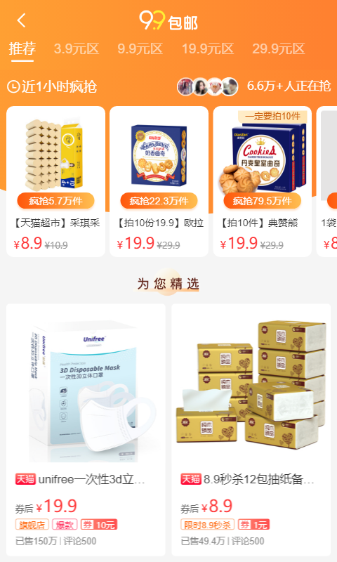 2、9.9元包邮到家的活动,等着你去参加。