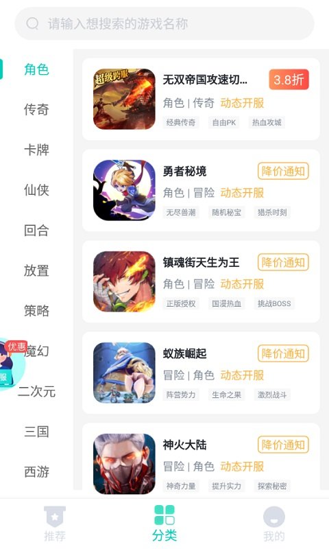 你想玩什么就搜什么,还有海量游戏福利、充值折扣等你来体验。