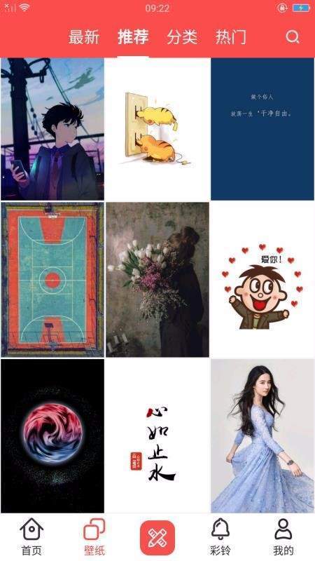 进入app就可以在首页产系统推送的各种手机壁纸、表情图片等内容