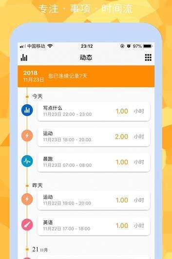 就跟记流水账一样简单,写下做了什么事,然后记上花了多长时间。每周每月会统计一次时间的花费,你会更了解时间,更了解你自己,更了解人生,更好的度过每一天每一时。