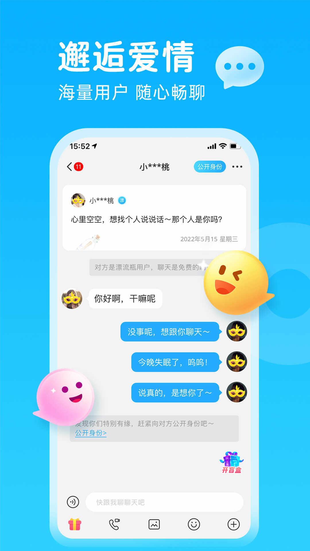 匿名聊天:用户可以在漂流瓶中发送匿名消息,保护个人隐私,避免暴露个人信息。