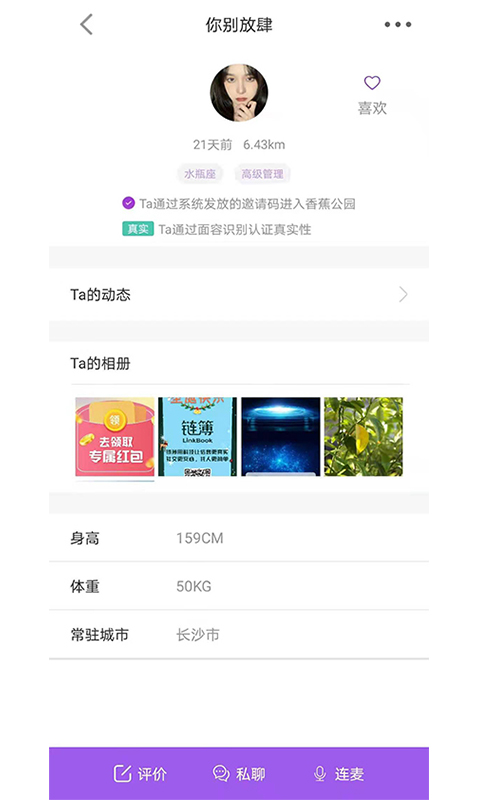 5、支持个人主页动态查看,一键即可开启语音、视频通话,线下同城交友。