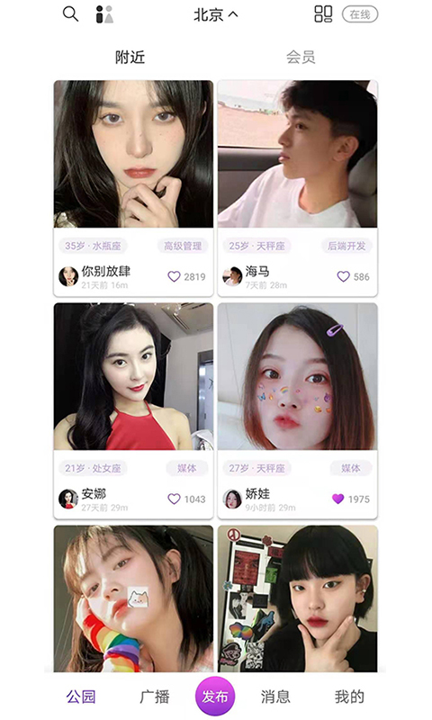 4、相交公园app,陌生人同城专属交友社区。软件通过智能匹配推送周边异性。
