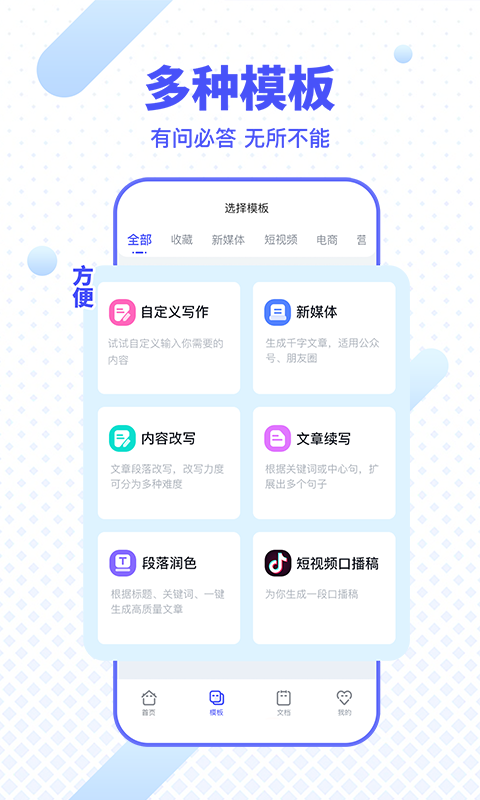 2、丰富的写作模板,让您快速生成不同领域的专业文章。