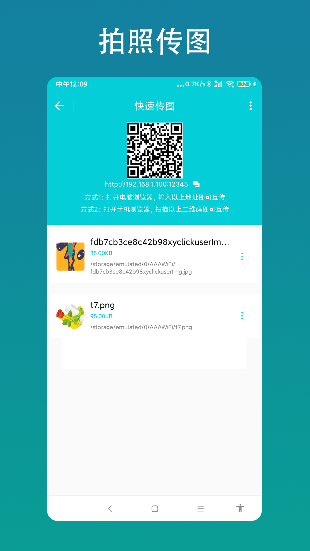 2.软件为用户提供智能拍照传图功能,让用户扫描即可快速传输图片,达到文件传输的最高效率。