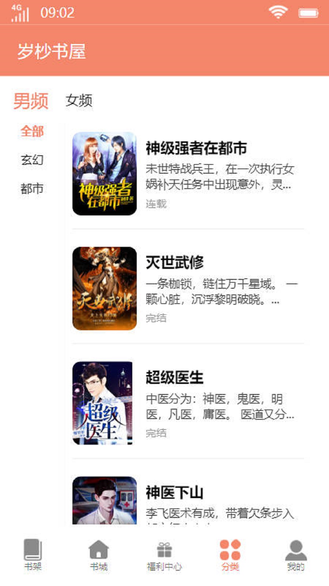 小说类型分类都一目了然,男频、女频任你挑选