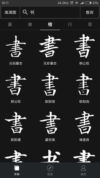 书法字典大全去广告版app非常适合想学习书法的用户在这里进行学习,这里面有着海量的书法大全,并且每一种字体都能够在这里学习,而且软件里面收录的各个书法字典都是高清,对于新手以及老手都非常合适在这里继续深造书法造诣!