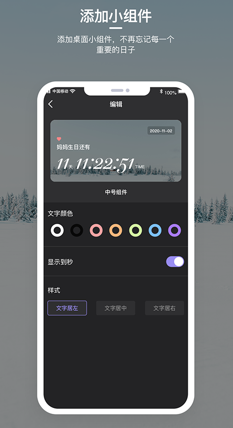 时间说是一款功能丰富的小组件APP,添加炫酷时钟,多种组件任意组合,随意挑选,打造属于你自己的专属桌面。