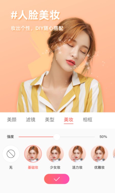 5、智能识别你的脸型和五官,为你定制专属美颜方案。