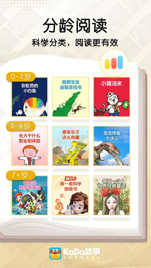 KaDa故事(点击故事)是一个专注于为儿童提供阅读解决方案的内容平台,包括绘本、单词书、桥段书、有声书、漫画、少儿期刊等儿童读物。解决了“读什么”和“怎么读”的问题,帮助孩子培养了阅读兴趣,提高了阅读能力,储备了知识素养。孩子,就用KaDa故事吧!