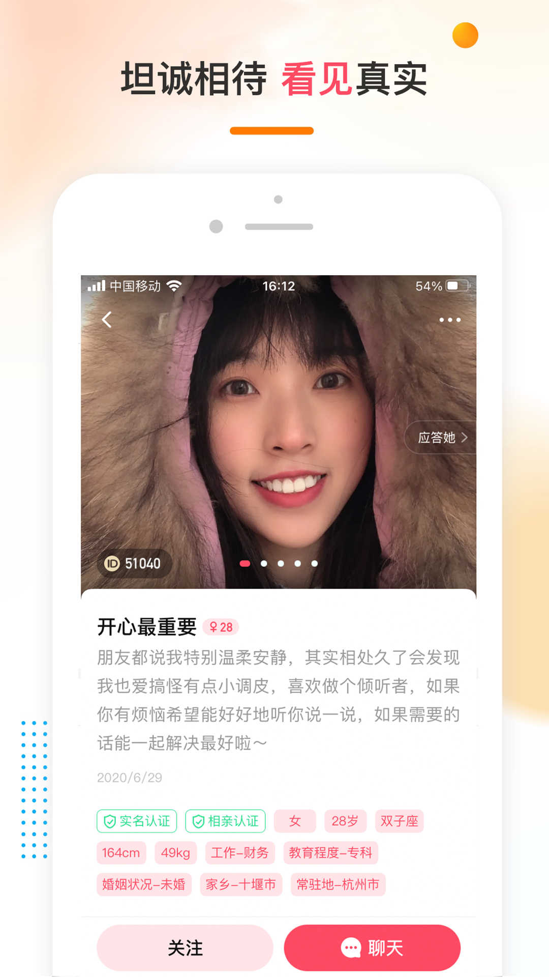 平台会对相亲男女提交的资料认真审核,我们绝不允许做假,一切不真诚的行为,这里都不欢迎。