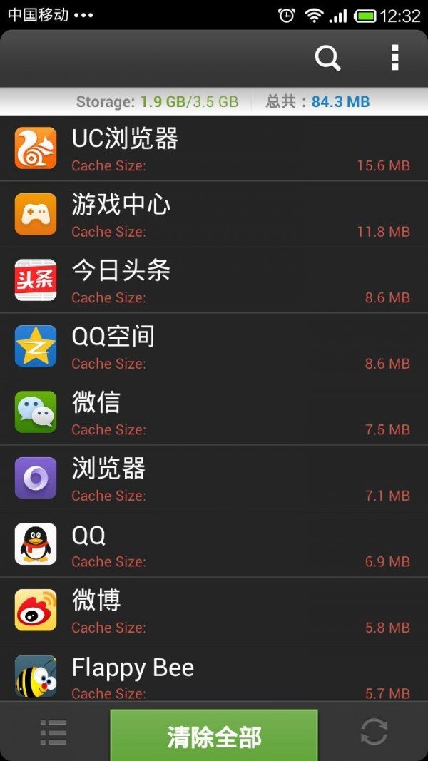 还在为手机内存不够而烦恼?还在为手机经常卡机而苦恼?快来试试缓存清理器,一个快速清除应用程序缓存的工具。一次点击就可以清除所有程序的缓存,为手机腾出更多的可用空间。如果您的内置存储空间不够用了,您可以使用这个工具清理应用程序的缓存或者数据文件,以此达到节省手机内存的目的.