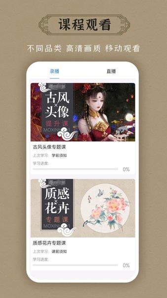 1、丰富的绘画课程:墨心绘意提供多种国风绘画课程,包括山水画、花鸟画等,让用户能够系统学习不同风格的绘画技巧和方法。