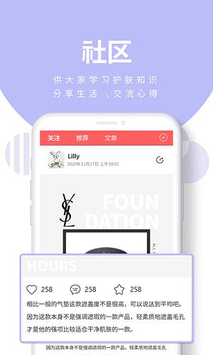4、护肤达人分享,用户可以关注一些护肤达人,了解他们推荐的护肤品牌、护肤经验和护肤秘籍,获得更深入的护肤指导。