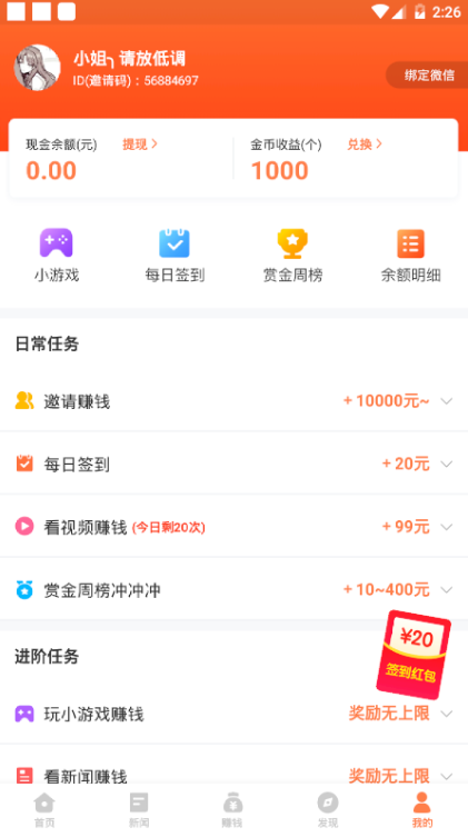 *绑定微信后,还可以提现红包,赚取现金奖励,是一款适合室内锻炼的网赚软件。