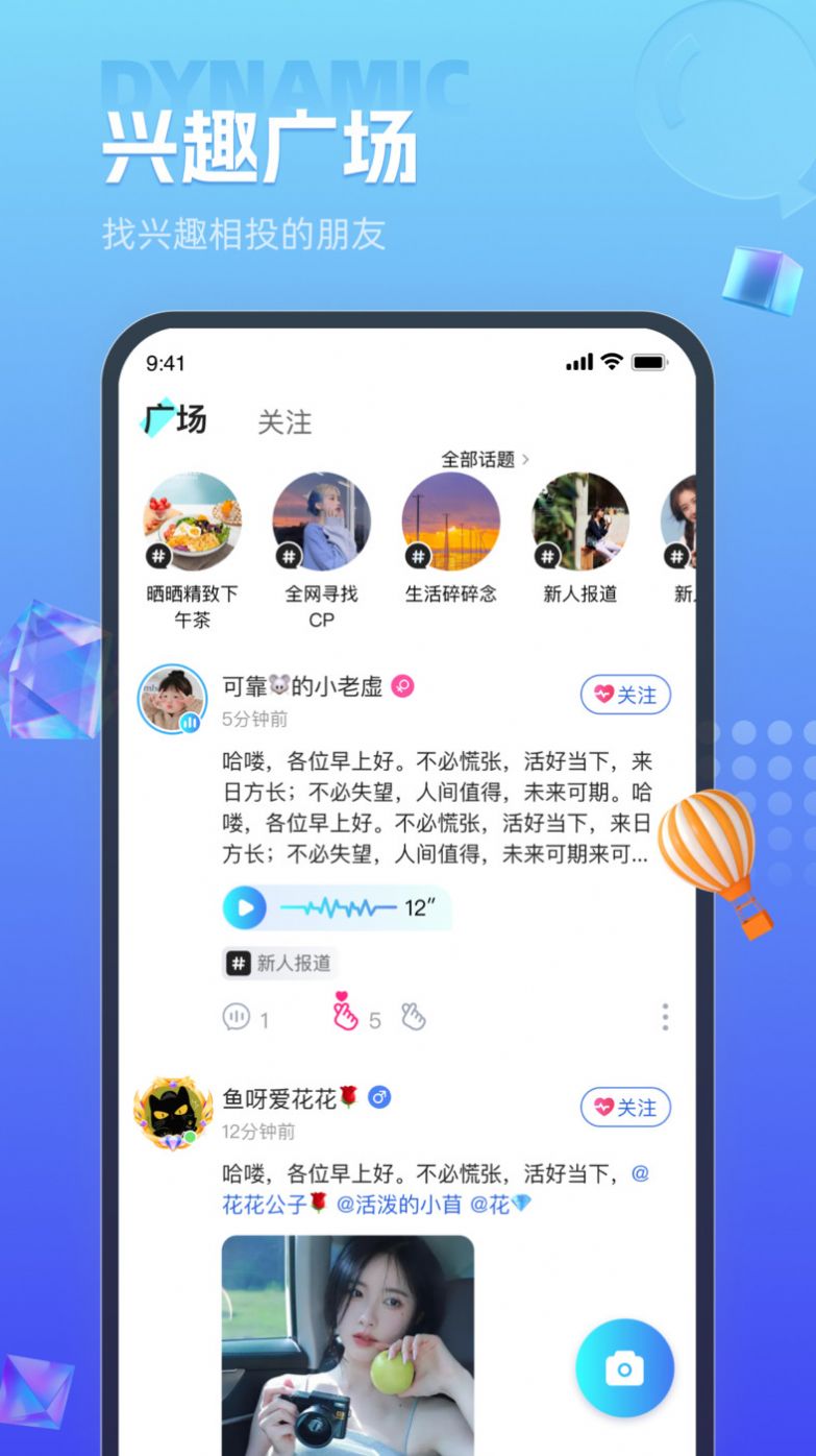 2、文字和语音聊天、动态发布、好友推荐、附近查找、群组互动等全方位交友功能,满足用户各种交友需求;