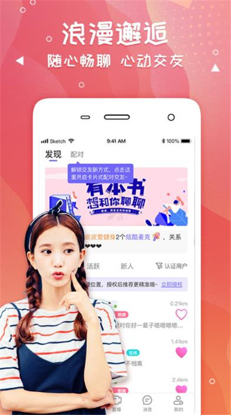 1、附近几公里内单身年轻人快速匹配,连接彼此更方便。