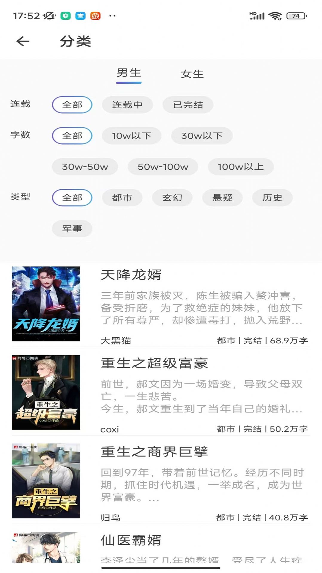 2、支持多种小说类型,涵盖言情、玄幻、武侠、都市等多种题材,满足不同读者的阅读需求;