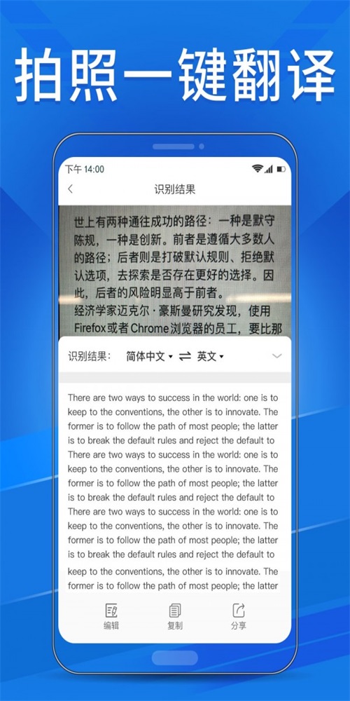 *强大OCR识别能力:能够准确识别图片中的文字内容,并将其转换为可编辑的文本,实现从图片到文字的快速转换。