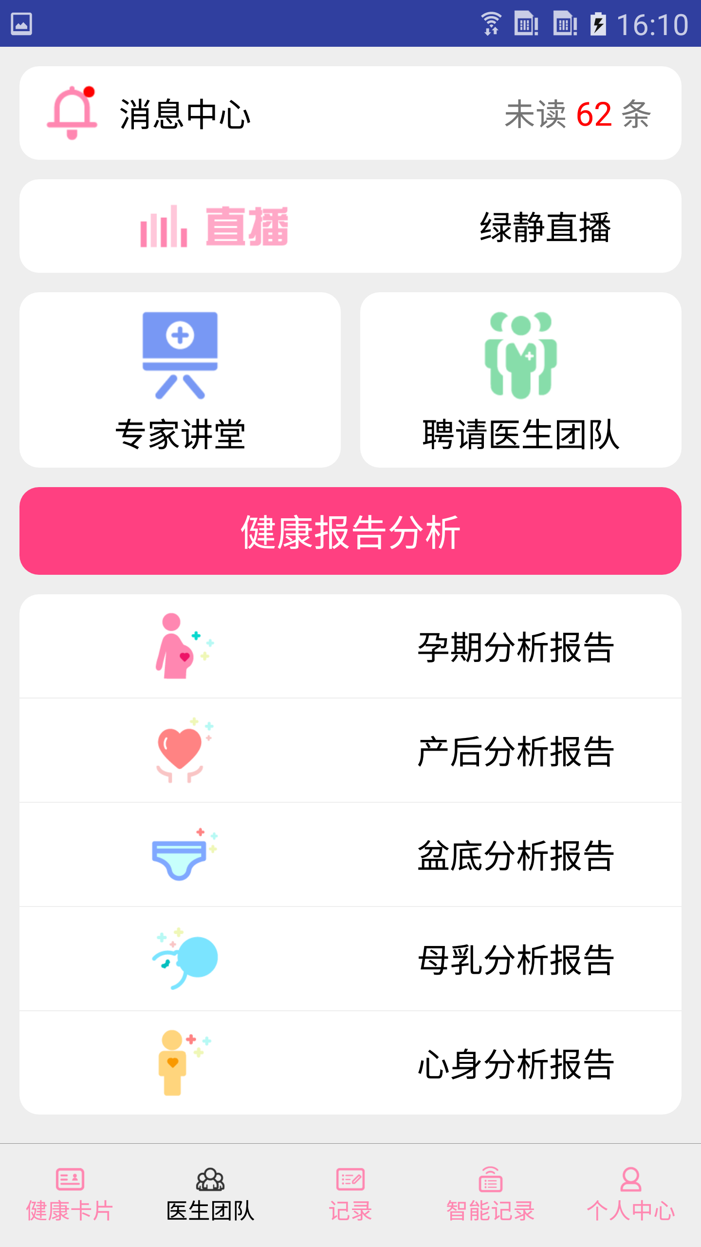 妇幼保健站是您每日记录,跟踪健康的必备之选。 还可以购买我们的智能设备进行智能记录。 获取健康报告,实时查看自己的健康状况。医院家庭,健康关爱无缝对接,专属医生,精准照护,智能健康,时尚生活,妇幼保健站,孕育保障。
