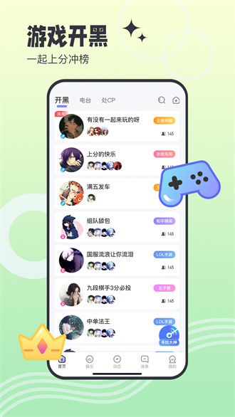 1、可以举办专属的语音派对,游戏达人可进行多项游戏技能认证,一起在里面开黑交流;